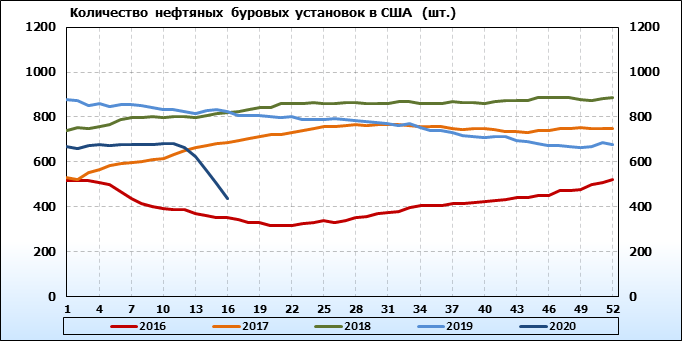Baker Hughes. Количество буровых установок в США на 17 апреля 2020