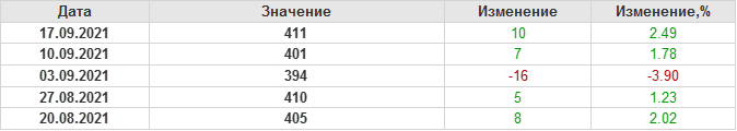 По сообщению Baker Hughes количество нефтяных буровых установок в США на 17.09.21 составило 411 штук. За неделю количество буровых установок выросло на 10 единиц. На прошлой неделе количество установок, которые прекратили работу составило 1 единицу. Количество установок, которые ввели в эксплуатацию составило 11 единиц. По итогам недели рост количества установок очевиден.