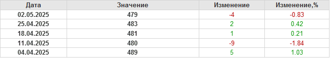 По сообщению Baker Hughes количество нефтяных буровых установок в США на 02.05.25 составило 479 штук. За неделю количество буровых установок упало на 4 единицы.
