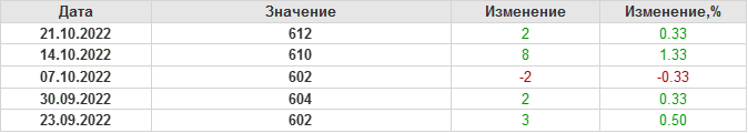 По сообщению Baker Hughes количество нефтяных буровых установок в США на 21.10.22 составило 612 штук. За неделю количество буровых установок выросло на 2 единицы. На прошлой неделе количество установок, которые прекратили работу составило 1 единицу. Количество установок, которые ввели в эксплуатацию составило 3 единицы. Как видим, рост числа установок есть, но он незначительный.