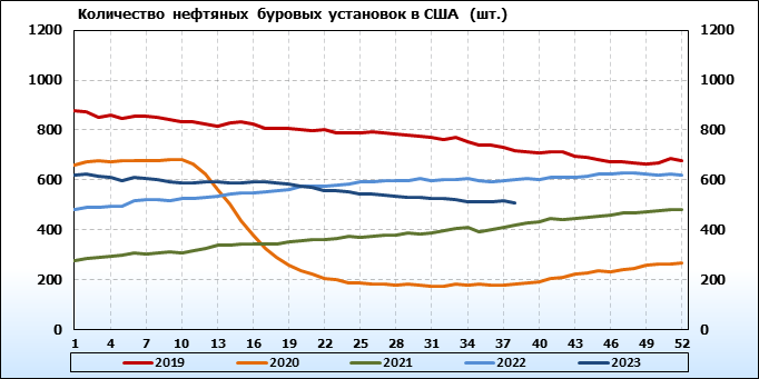 Baker Hughes. Количество буровых установок в США на 22 сентября 2023