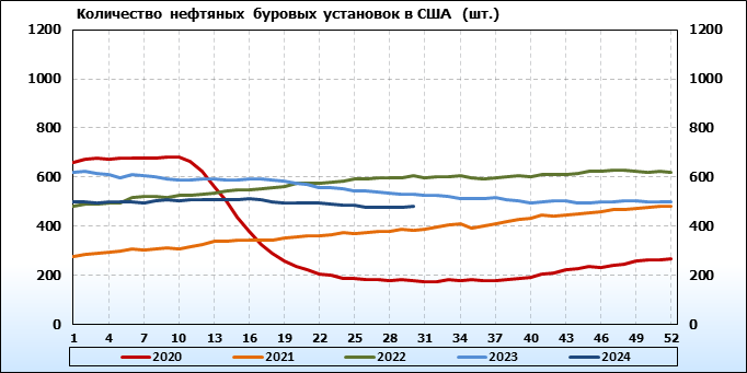Baker Hughes. Количество буровых установок в США на 26 июля 2024
