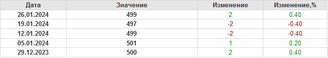 По сообщению Baker Hughes количество нефтяных буровых установок в США на 26.01.24 составило 499 штуки. За неделю количество буровых установок выросло на 2 единицы. На прошлой неделе количество установок, которые прекратили работу составило 3 единицы. Количество установок, которые ввели в эксплуатацию составило 5 единиц. Как видим, рост числа установок есть, но он незначительный.