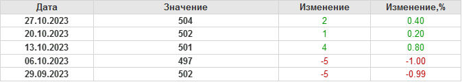 По сообщению Baker Hughes количество нефтяных буровых установок в США на 27.10.23 составило 504 штуки. За неделю количество буровых установок выросло на 2 единицы. На прошлой неделе количество установок, которые прекратили работу составило 2 единицы. Количество установок, которые ввели в эксплуатацию составило 4 единицы. Как видим, рост числа установок есть, но он незначительный.