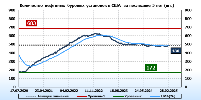 Baker Hughes. Количество буровых установок в США на 28 февраля 2025