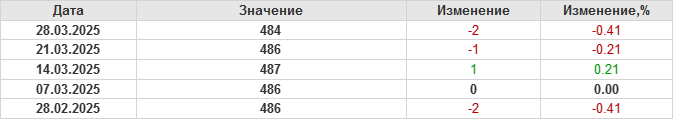 По сообщению Baker Hughes количество нефтяных буровых установок в США на 28.03.25 составило 484 штуки. За неделю количество буровых установок упало на 2 единицы.