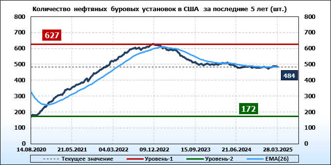 Baker Hughes. Количество буровых установок в США на 28 марта 2025