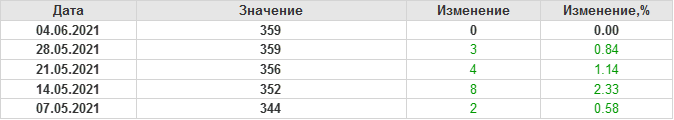 По сообщению Baker Hughes количество нефтяных буровых установок в США на 04.06.21 составило 359 штук. За неделю количество буровых установок осталось неизменным. На прошлой неделе количество установок, которые прекратили работу составило 2 единицы. Количество установок, которые ввели в эксплуатацию составило 2 единицы.
