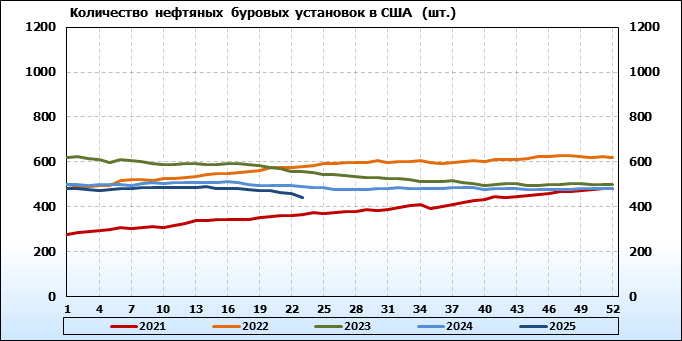 Baker Hughes. Количество буровых установок в США на 6 июня 2025