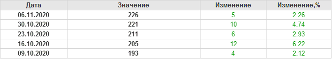 По сообщению Baker Hughes количество нефтяных буровых установок в США на 06.11.20 составило 226 штук. За неделю количество буровых установок выросло на 5 единиц. На прошлой неделе количество установок, которые прекратили работу составило 4 единицы. Количество установок, которые ввели в эксплуатацию составило 9 единиц. Как видим, рост числа установок есть, но он незначительный.