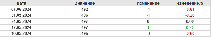 По сообщению Baker Hughes количество нефтяных буровых установок в США на 07.06.24 составило 492 штуки. За неделю количество буровых установок упало на 4 единицы.