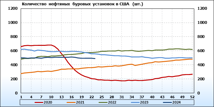 Baker Hughes. Количество буровых установок в США на 7 июня 2024