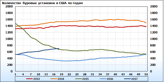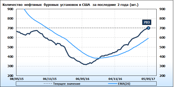 Baker Hughes. Количество нефтяных буровых установок в США на 05.05.2017