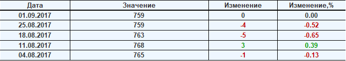 По сообщению Baker Hughes количество нефтяных буровых установок в США на 1.09.2017 составило 759 штук. За неделю количество буровых установок осталось неизменным и составляет 759 единиц. На прошлой неделе количество установок, которые прекратили работу составило 6 единиц. Количество установок, которые ввели в эксплуатацию составило 6 единиц.