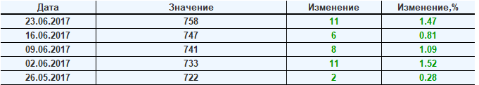 По сообщению Baker Hughes количество нефтяных буровых установок в США на 23.06.2017 составило 758 штук. За неделю количество буровых установок выросло на 11 единиц. На прошлой неделе количество установок, которые прекратили работу составило 2 единицы. Количество установок, которые ввели в эксплуатацию составило 13 единиц. По итогам недели рост количества установок очевиден.