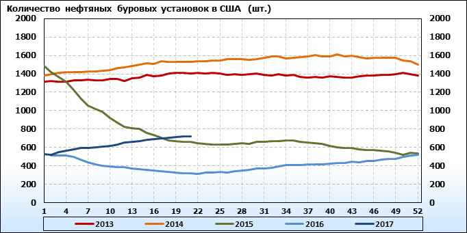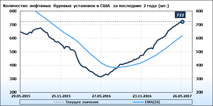 Baker Hughes. Количество нефтяных буровых установок в США на 26.05.2017