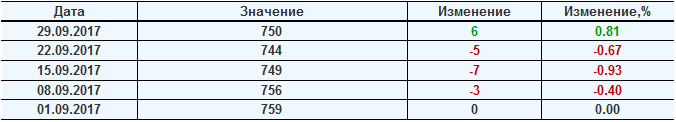 По сообщению Baker Hughes количество нефтяных буровых установок в США на 29.09.2017 составило 750 штук. За неделю количество буровых установок выросло на 6 единиц. На прошлой неделе количество установок, которые прекратили работу составило 4 единицы. Количество установок, которые ввели в эксплуатацию составило 10 единиц. Как видим, рост числа установок есть, но он незначительный.