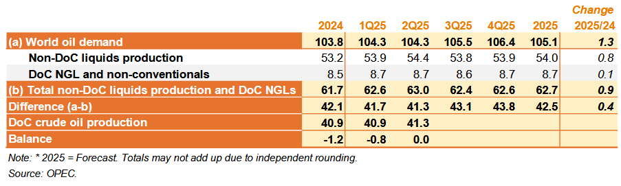 Таблица 10 — 1: Баланс спроса и предложения нефти DoC на 2025 год*, млн баррелей в сутки