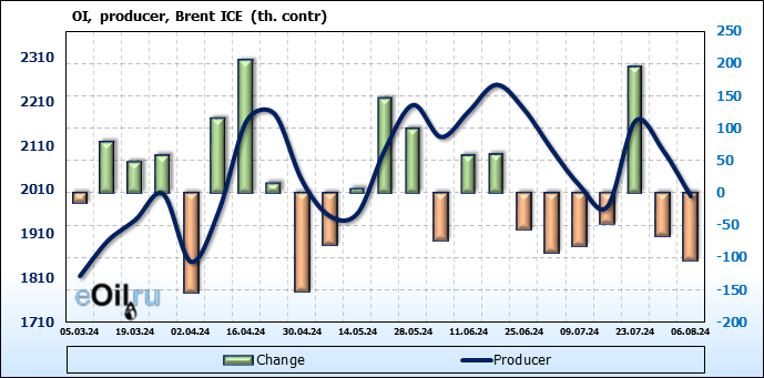 За неделю разница между длинными и короткими позициями производителей сократилась на 6 тыс. контрактов.