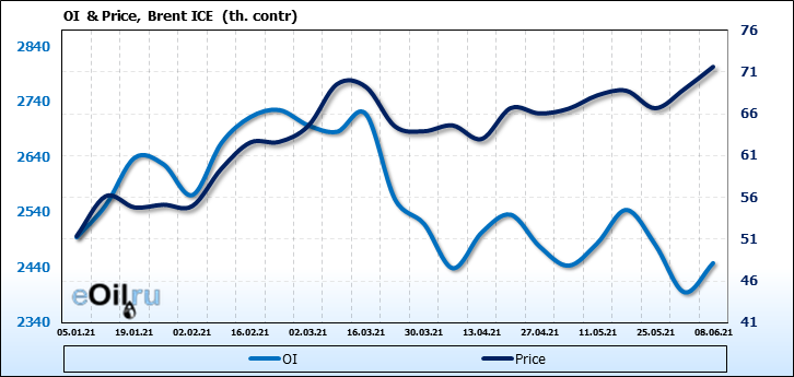 Brent. Открытый интерес на 12 июня 2021