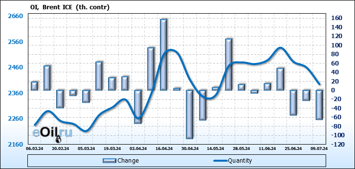 За прошедшую неделю, 03.07.24 — 09.07.24, открытый интерес упал на 65 тыс. контрактов. Объем вовлеченных в торговлю контрактов составляет 2 395 290 штук. Текущее положение дел на рынке таково, что деньги в течение прошлой недели уходили с рынка не видя привлекательности в текущей ситуации.