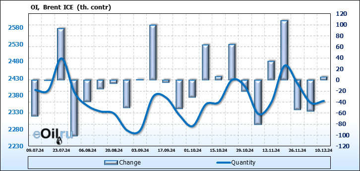 За прошедшую неделю, 04.12.24 — 10.12.24, открытый интерес вырос на 6 тыс. контрактов. Объем вовлеченных в торговлю контрактов составляет 2 363 087 штук. Текущее положение дел на рынке таково, что деньги в течение прошлой недели приходили на рынок поддерживая тенденцию.