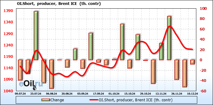 За неделю разница между длинными и короткими позициями производителей сократилась на 1.4 тыс. контрактов.