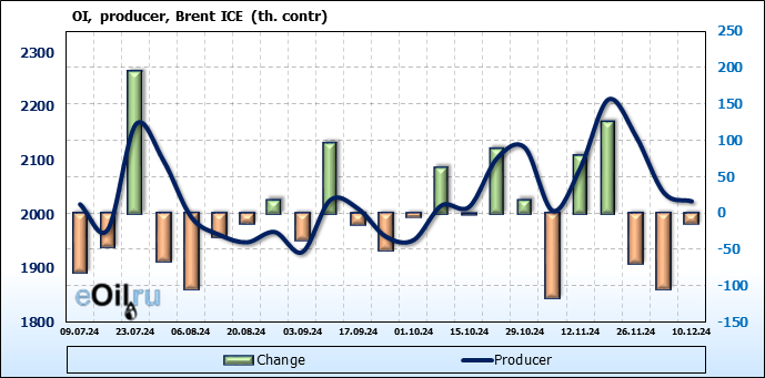 За неделю разница между длинными и короткими позициями производителей сократилась на 1.4 тыс. контрактов.