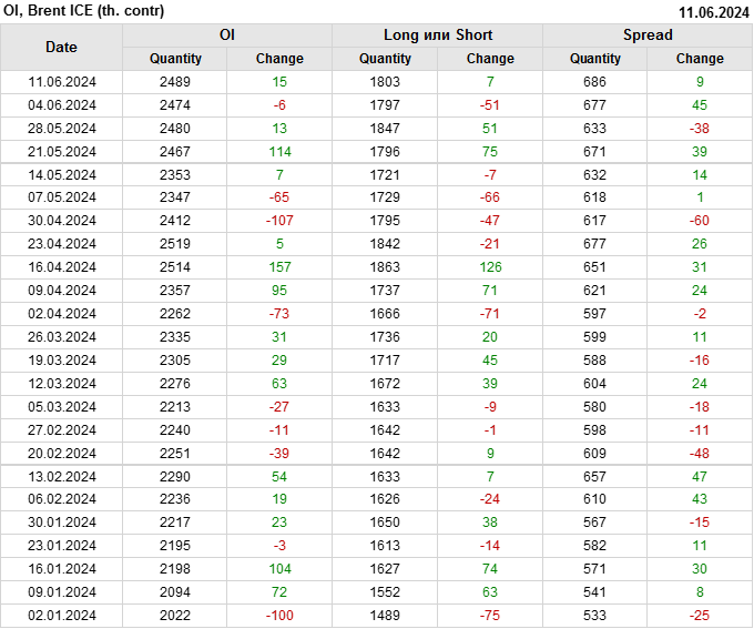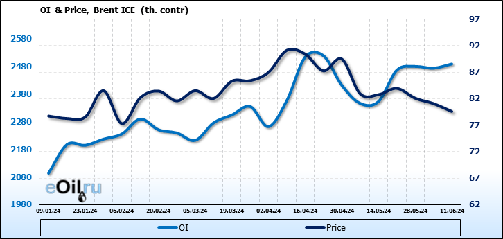 За прошедшую неделю, 05.06.24 — 11.06.24, открытый интерес вырос на 15 тыс. контрактов. Объем вовлеченных в торговлю контрактов составляет 2 489 035 штук. Текущее положение дел на рынке таково, что деньги в течение прошлой недели приходили на рынок поддерживая тенденцию.