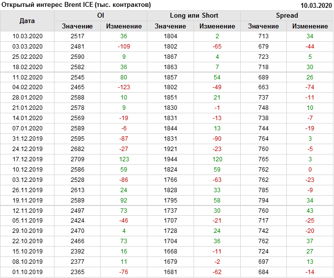 Brent. Открытый интерес на 14 марта 2020