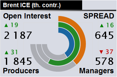 За прошлую неделю разница между OI производителей и OI управляющих сократилась на 24 388 контрактов. Разница между длинными позициями производителей и управляющих выросла на 72 986 контрактов. Разница между короткими позициями производителей и управляющих сократилась на 22 889 контрактов.