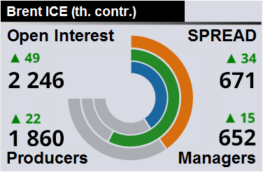 За прошлую неделю разница между OI производителей и OI управляющих выросла на 18 319 контрактов. Разница между длинными позициями производителей и управляющих выросла на 88 477 контрактов. Разница между короткими позициями производителей и управляющих сократилась на 12 632 контракта.