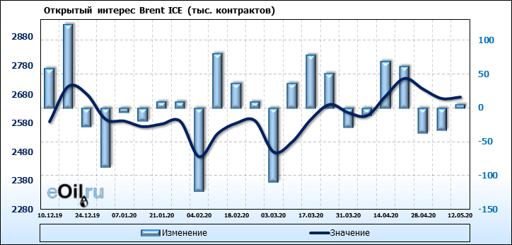 За прошлую неделю, 06.05.20 — 12.05.20, открытый интерес вырос на 5 тыс. контрактов. Объем вовлеченных в торговлю контрактов составляет 2 672 144 штуки. Текущее положение дел на рынке таково, что деньги в течение прошлой недели приходили на рынок поддерживая тенденцию.