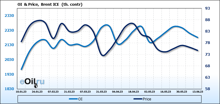 WTI. Открытый интерес на 17 июня 2023
