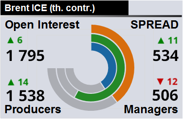 За прошлую неделю разница между OI производителей и OI управляющих выросла на 1 032 контракта. Разница между длинными позициями производителей и управляющих выросла на 41 300 контрактов. Разница между короткими позициями производителей и управляющих выросла на 26 061 контракт.