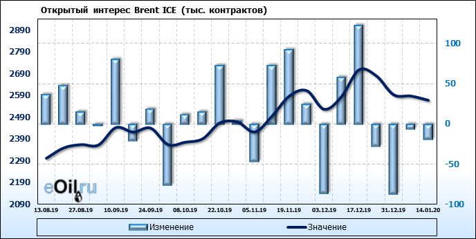 За прошлую неделю, 08.01.20 — 14.01.20, открытый интерес упал на 19 тыс. контрактов. Объем вовлеченных в торговлю контрактов составляет 2 569 275 штук. Текущее положение дел на рынке таково, что деньги в течение прошлой недели уходили с рынка не видя привлекательности в текущей ситуации.