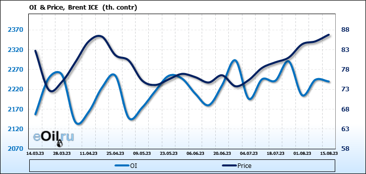 Brent. Открытый интерес на 19 августа 2023