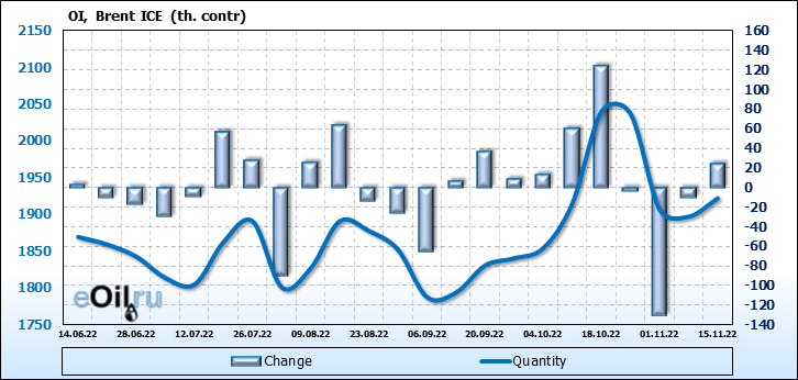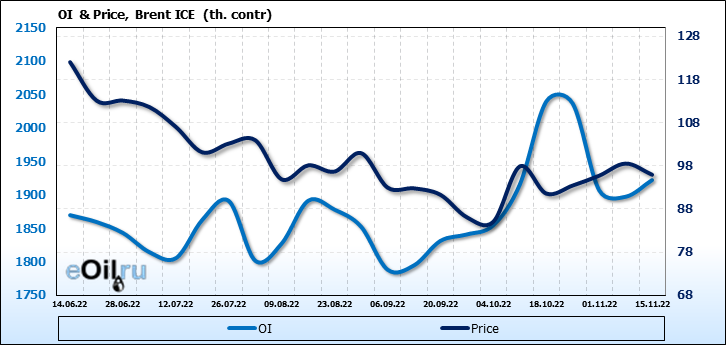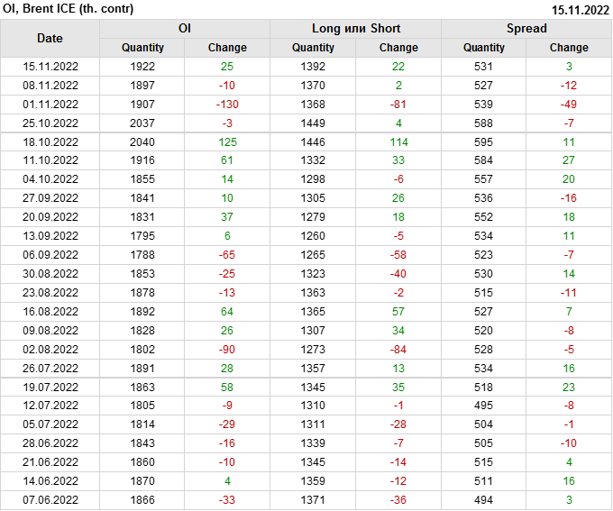 За прошедшую неделю, 09.11.22 — 15.11.22, открытый интерес вырос на 25 тыс. контрактов. Объем вовлеченных в торговлю контрактов составляет 1 922 490 штук. Текущее положение дел на рынке таково, что деньги в течение прошлой недели приходили на рынок поддерживая тенденцию.