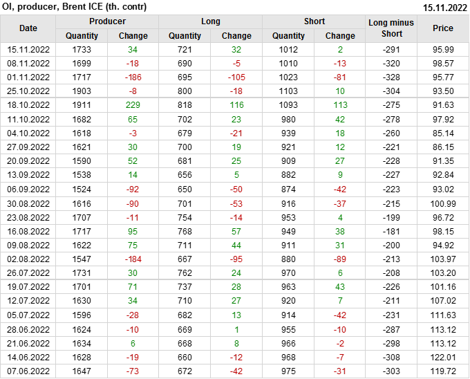 За неделю разница между длинными и короткими позициями производителей сократилась на 29.3 тыс. контрактов.
