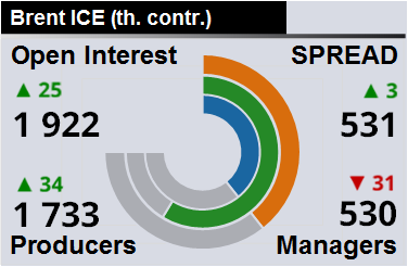 За прошлую неделю разница между OI производителей и OI управляющих выросла на 10 591 контракт. Разница между длинными позициями производителей и управляющих выросла на 19 807 контрактов. Разница между короткими позициями производителей и управляющих сократилась на 14 205 контрактов.