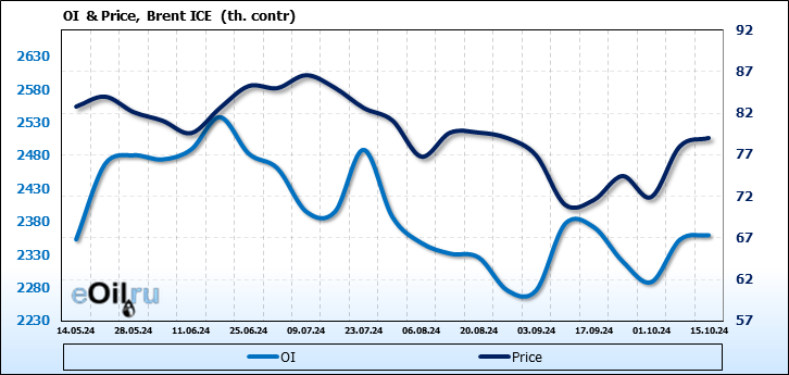 За прошедшую неделю, 09.10.24 — 15.10.24, открытый интерес вырос на 7 тыс. контрактов. Объем вовлеченных в торговлю контрактов составляет 2 359 726 штук. Текущее положение дел на рынке таково, что деньги в течение прошлой недели приходили на рынок поддерживая тенденцию.