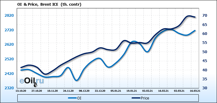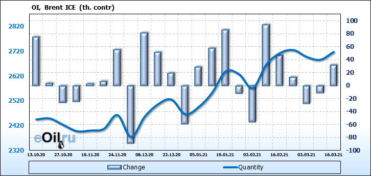 За прошлую неделю, 10.03.21 — 16.03.21, открытый интерес вырос на 32 тыс. контрактов. Объем вовлеченных в торговлю контрактов составляет 2 717 729 штук. Текущее положение дел на рынке таково, что деньги в течение прошлой недели приходили на рынок поддерживая тенденцию.