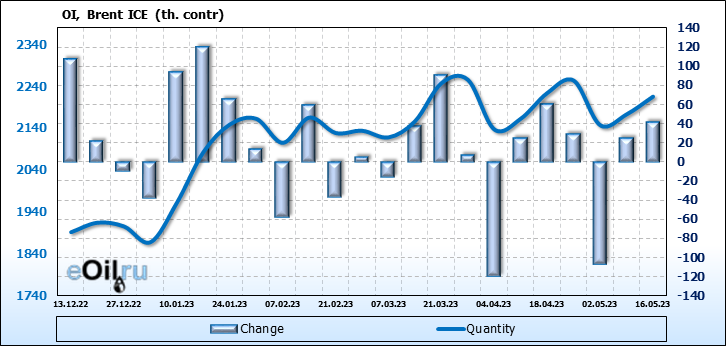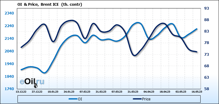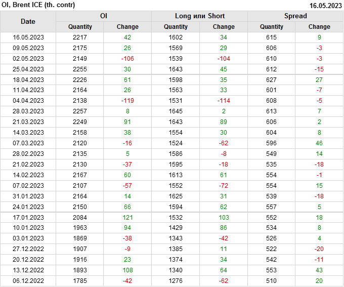 За прошедшую неделю, 10.05.23 — 16.05.23, открытый интерес вырос на 42 тыс. контрактов. Объем вовлеченных в торговлю контрактов составляет 2 217 023 штуки. Текущее положение дел на рынке таково, что деньги в течение прошлой недели приходили на рынок поддерживая тенденцию.