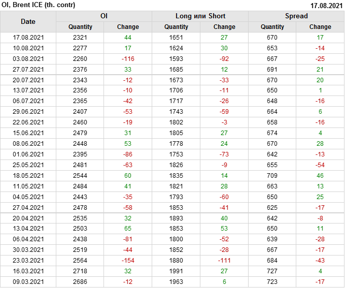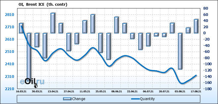 За прошедшую неделю, 11.08.21 — 17.08.21, открытый интерес вырос на 44 тыс. контрактов. Объем вовлеченных в торговлю контрактов составляет 2 320 730 штук. Текущее положение дел на рынке таково, что деньги в течение прошлой недели приходили на рынок поддерживая тенденцию.