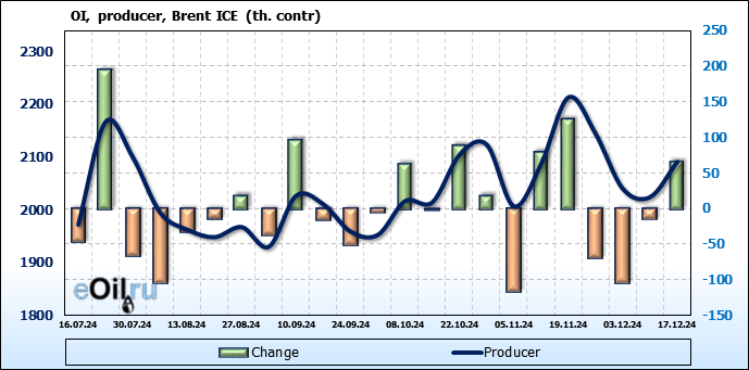 За неделю разница между длинными и короткими позициями производителей сократилась на 7.8 тыс. контрактов.