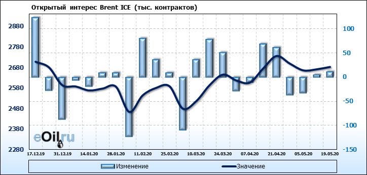 За прошлую неделю, 13.05.20 — 19.05.20, открытый интерес вырос на 11 тыс. контрактов. Объем вовлеченных в торговлю контрактов составляет 2 683 639 штук. Текущее положение дел на рынке таково, что деньги в течение прошлой недели приходили на рынок поддерживая тенденцию.