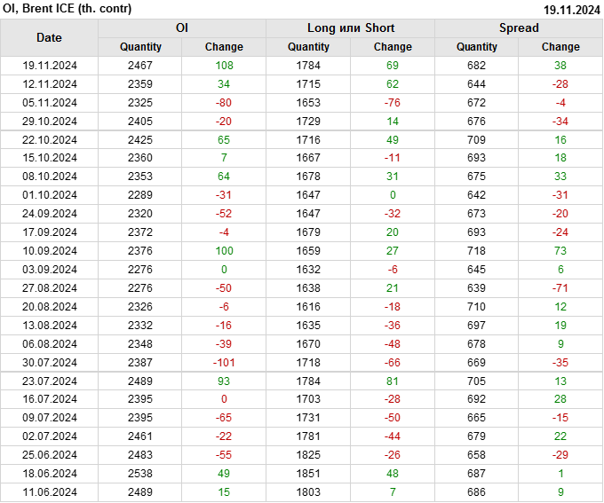 Brent. Открытый интерес на 23 ноября 2024