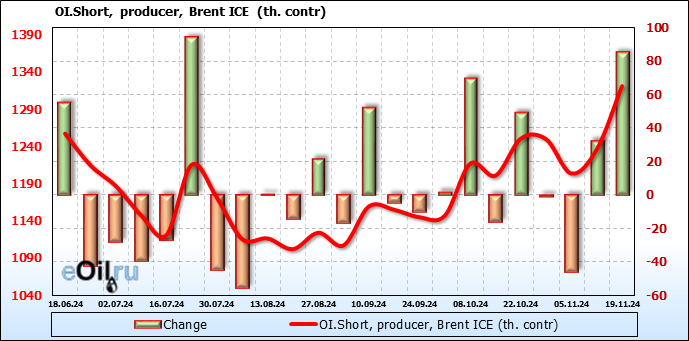 За неделю разница между длинными и короткими позициями производителей увеличилась на 43.7 тыс. контрактов.