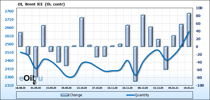 За прошлую неделю, 13.01.21 — 19.01.21, открытый интерес вырос на 86 тыс. контрактов. Объем вовлеченных в торговлю контрактов составляет 2 638 507 штук. Текущее положение дел на рынке таково, что деньги в течение прошлой недели приходили на рынок поддерживая тенденцию.