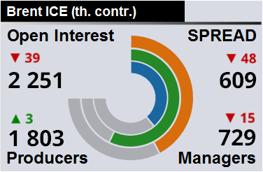 За прошлую неделю разница между OI производителей и OI управляющих выросла на 12 295 контрактов. Разница между длинными позициями производителей и управляющих сократилась на 17 554 контракта. Разница между короткими позициями производителей и управляющих выросла на 28 915 контрактов.